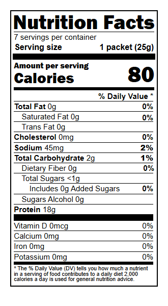 Ingredients: Hydrolyzed collagen protein (beef), fruit juice powders (blueberry, cranberry, pomegranate), citric acid, natural flavors, malic acid, contains 2 percent or less of sucralose (non-nutritive sweetener), silicon dioxide.